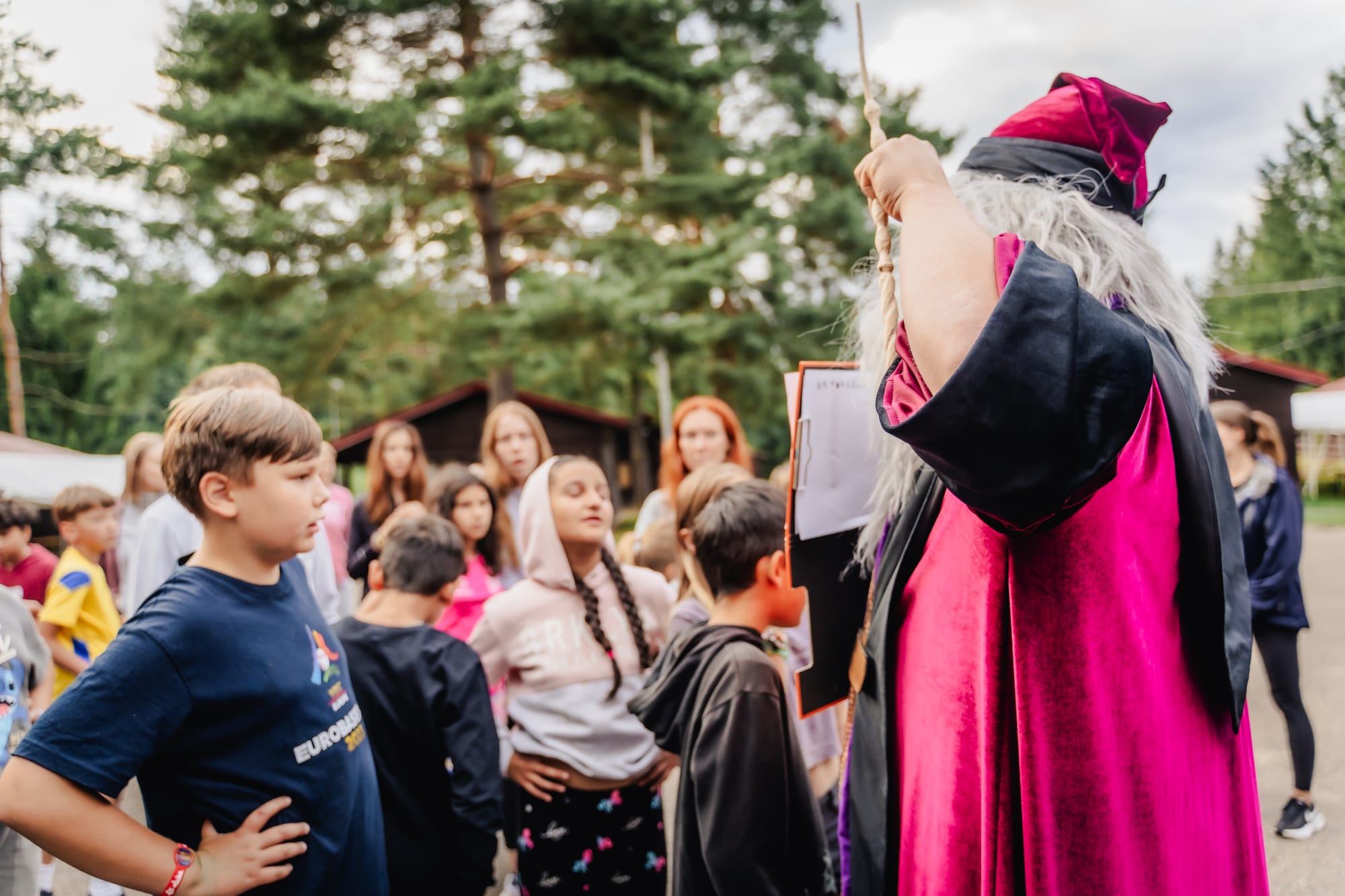 Nezapomněli jsme ani na naše nejmenší – měli svůj vlastní program plný pohádek, her, ale taky se statečně přidávali ke svým kolejím a sbírali body. Přestože byl každý den nabitý k prasknutí, vždy se našel čas na velká objímání, sdílení zážitků a večerní pohádku na dobrou noc. Protože právě tahle drobná kouzla dělají tábor táborem.