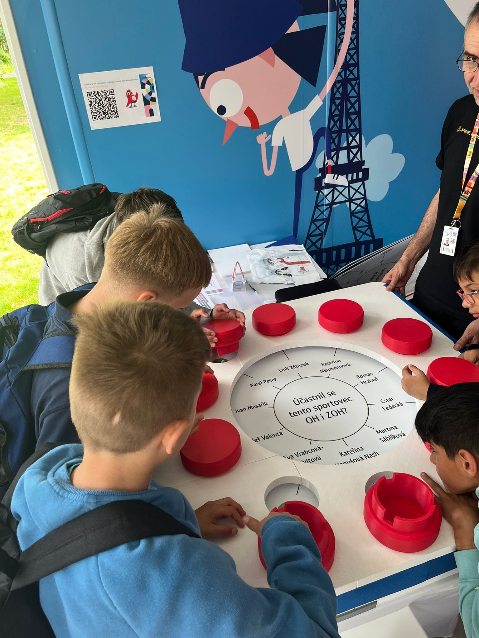 Odpoledne měly starší děti volný program s možností výběru z různých workshopů. S mladšími dětmi jsme navštívili workshop ruchování, kde si děti vyzkoušely, jak se vytvářejí zvuky k animovaným filmům. Zkoušely šustění stromů, kroky postav, vrzání vrat a mnoho dalšího. Tento workshop měl velký úspěch jak u dětí, tak u dospělých. Zpočátku se děti styděly, ale jakmile se zapojil první odvážlivec, následovali i ostatní. Po zbytek odpoledne si děti užívaly různé soutěže a zajímavé stanoviště připravené v rámci festivalu. Na závěr nás přišli pozdravit Bob a Bobek a herečky Darija Pavlovičová a Alžběta Malá. Děti měly možnost se s nimi vyfotit a prohodit pár slov.