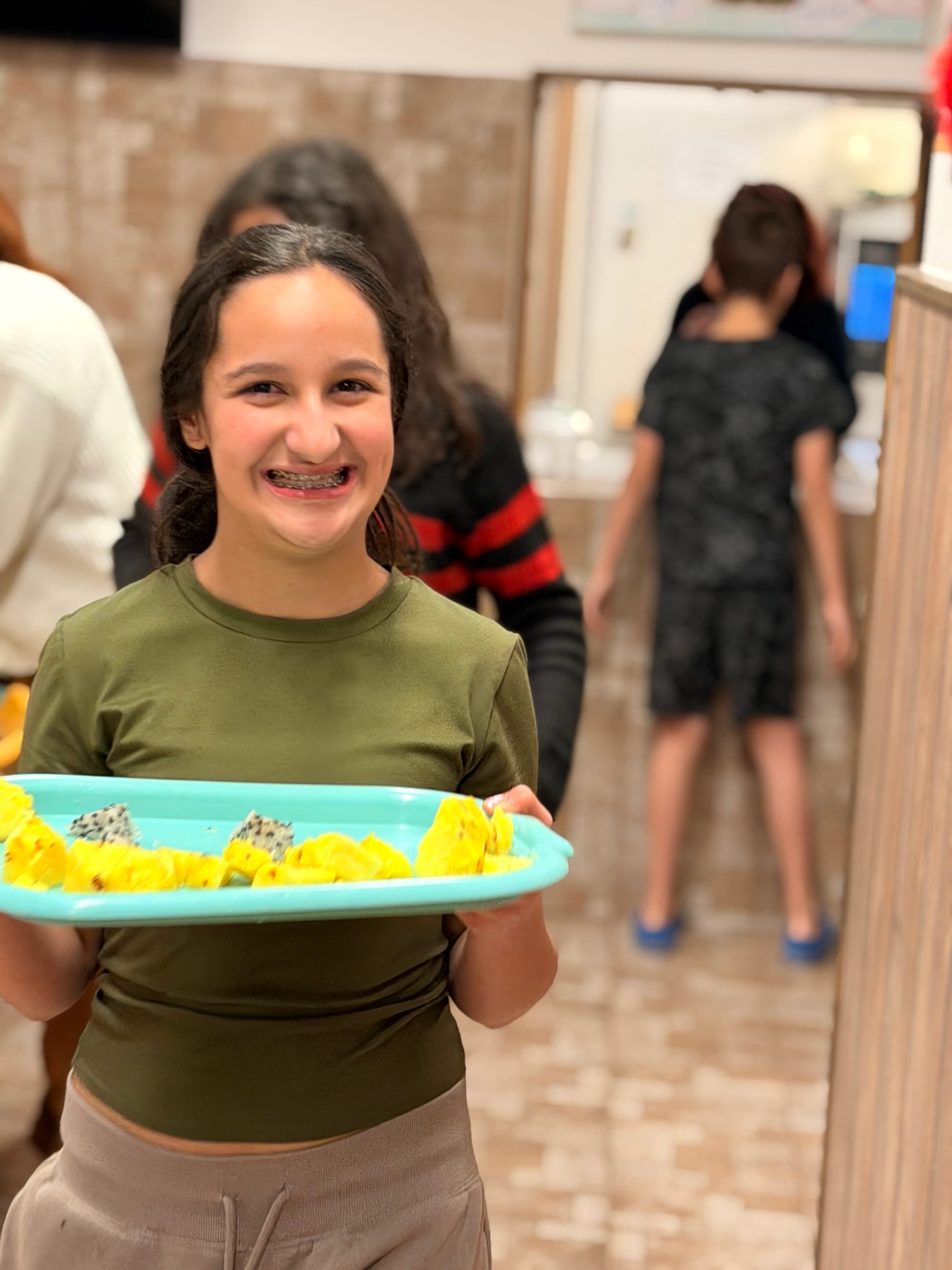 Stůl se prohýbal pod barvami. Děti měly možnost ochutnat šťavnaté mandarinky, klasické i krvavé pomeranče, ananas i krémové avokádo. Velkým hitem se stalo dračí ovoce. Pro většinu dětí to bylo úplně první setkání s tímto exotickým plodem a jeho netradiční vzhled i chuť sklidily největší úspěch.